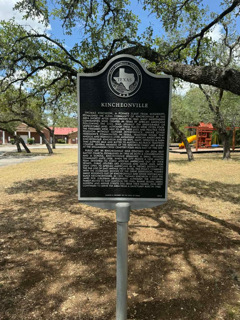 Between 1865 and 1930, formerly enslaved African Americans and their descendants founded hundreds of freedom settlements, or freedom colonies, throughout Texas. During Reconstruction and Jim Crow, Texas freedom colonies became pivotal places and spaces of Black landownership, economic self-sufficiency, refuge from white racial terror, and collective uplift and belonging within a broader society openly hostile to Black life and futurity. Several freedom colonies were established in and around Austin, including a number of rural freedom communities located across the city’s hinterlands. Shortly after Emancipation in 1865, Thomas and Mary Kincheon (also spelled “Kinchion”) established a family farm and founded Kincheonville in an unsettled area approximately seven miles south of Austin near Williamson Creek.